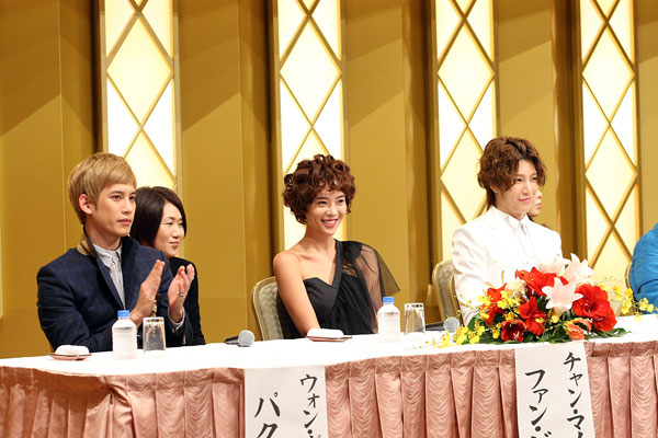 パク:ギウン:ノ・ミヌさん、ファン・ジョンウムさんとは初対面だったのですが、初めてとは思えないくらいすぐにとけこめた。作品の温かさがあったから、それが伝わって出来たことだと思う。温かいスタッフの中で良い作品をつくり、それを皆様にお届けできればと思う。